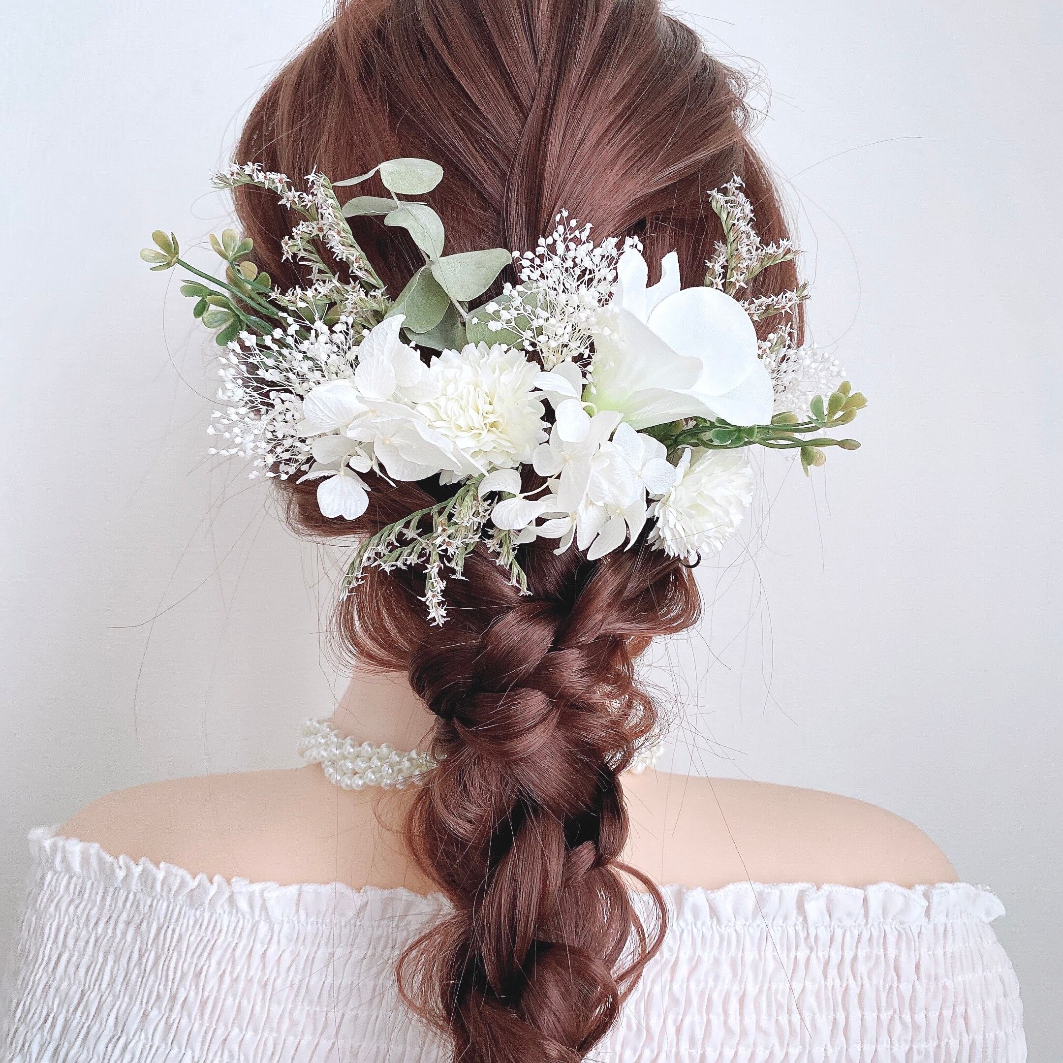 ブライダル 結婚式 成人式 卒業式 オレンジ 白 髪飾り あじさい カスミソウ ウェディング ヘッドドレス