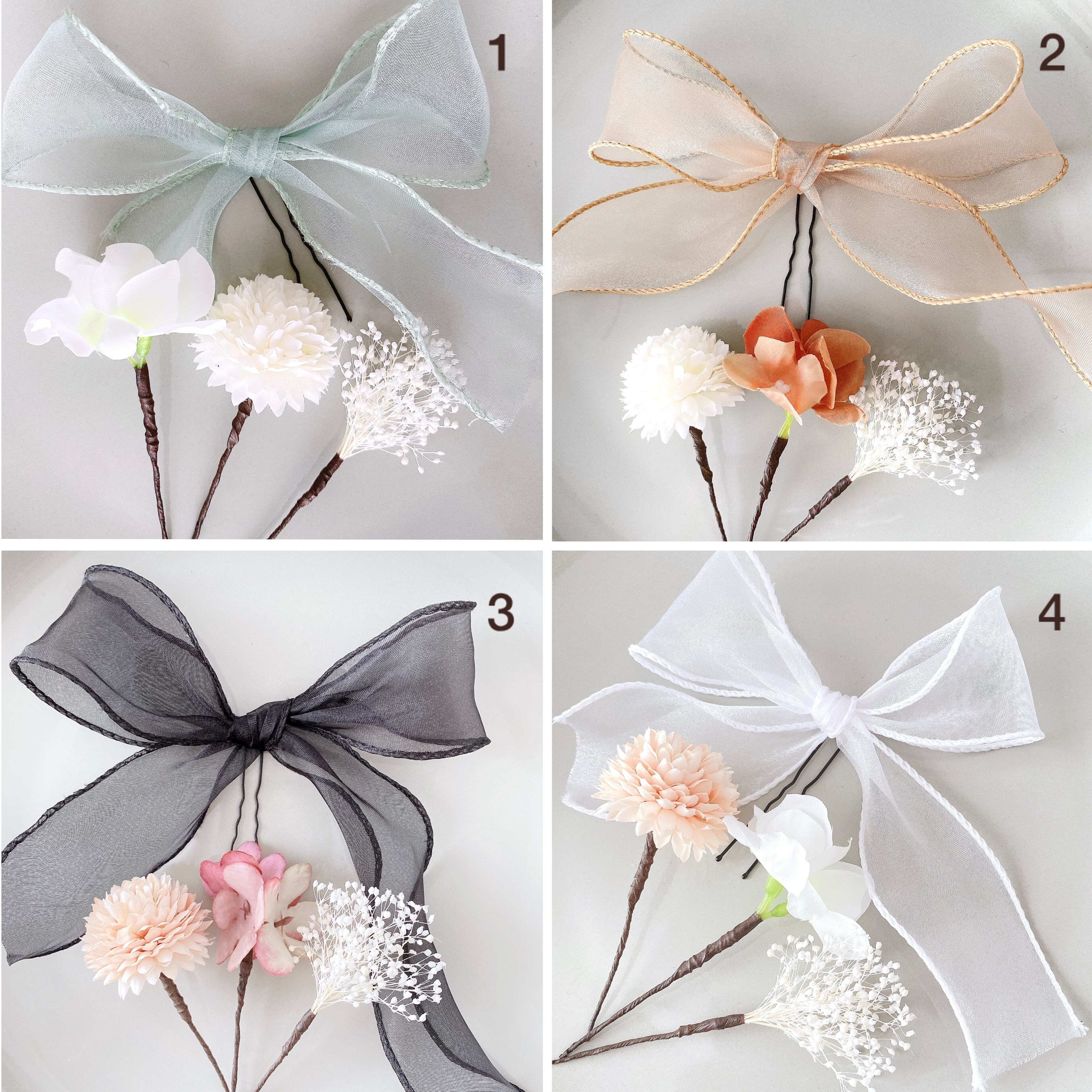 8パターンから選べる 浴衣やお呼ばれにもピッタリのお花➕リボンの髪飾り 4点セット