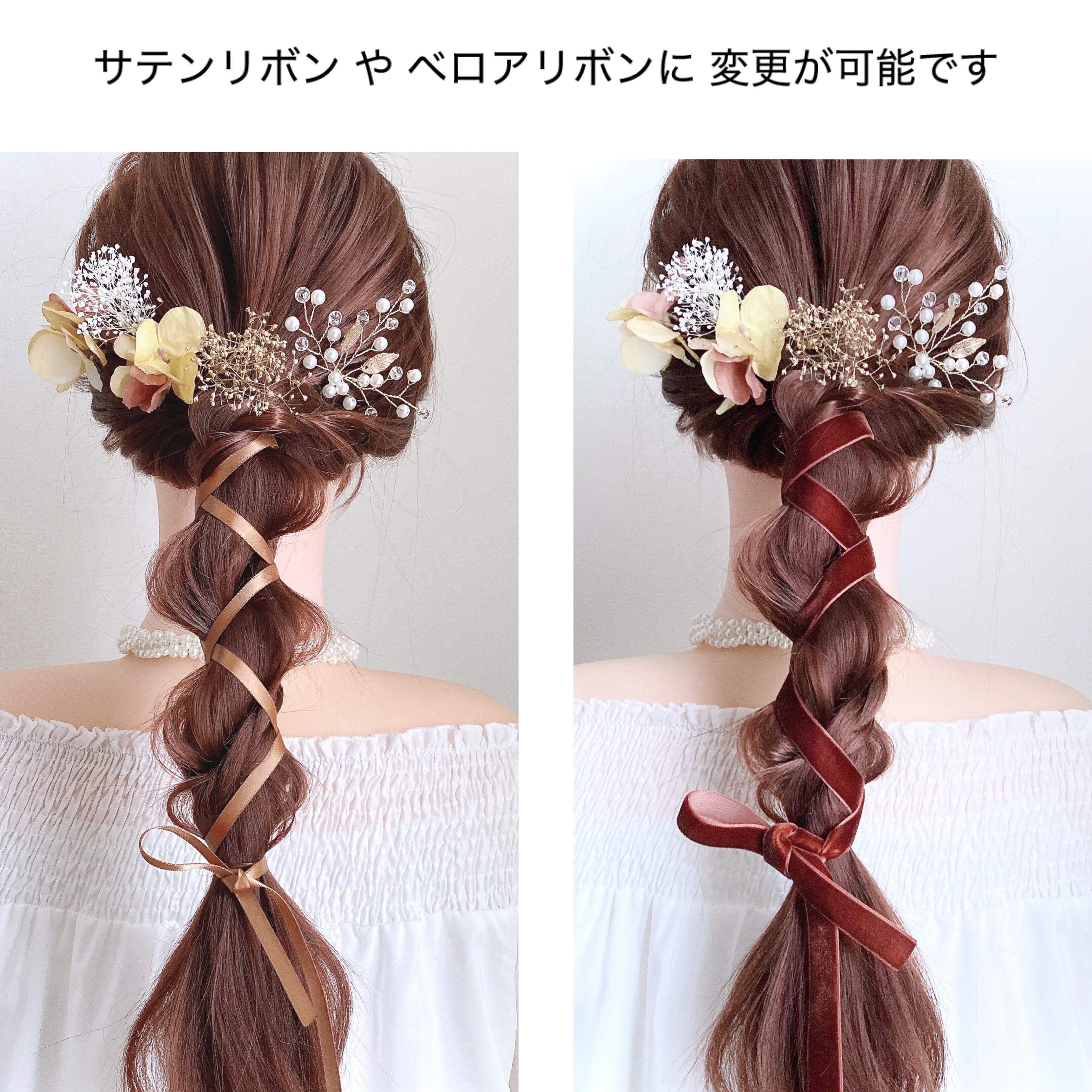 フラワー シアーリボン ヘッドドレス 花 ブライダル 結婚式 成人式 卒業式 花 オーガンジーリボン ベージュ ゴールド