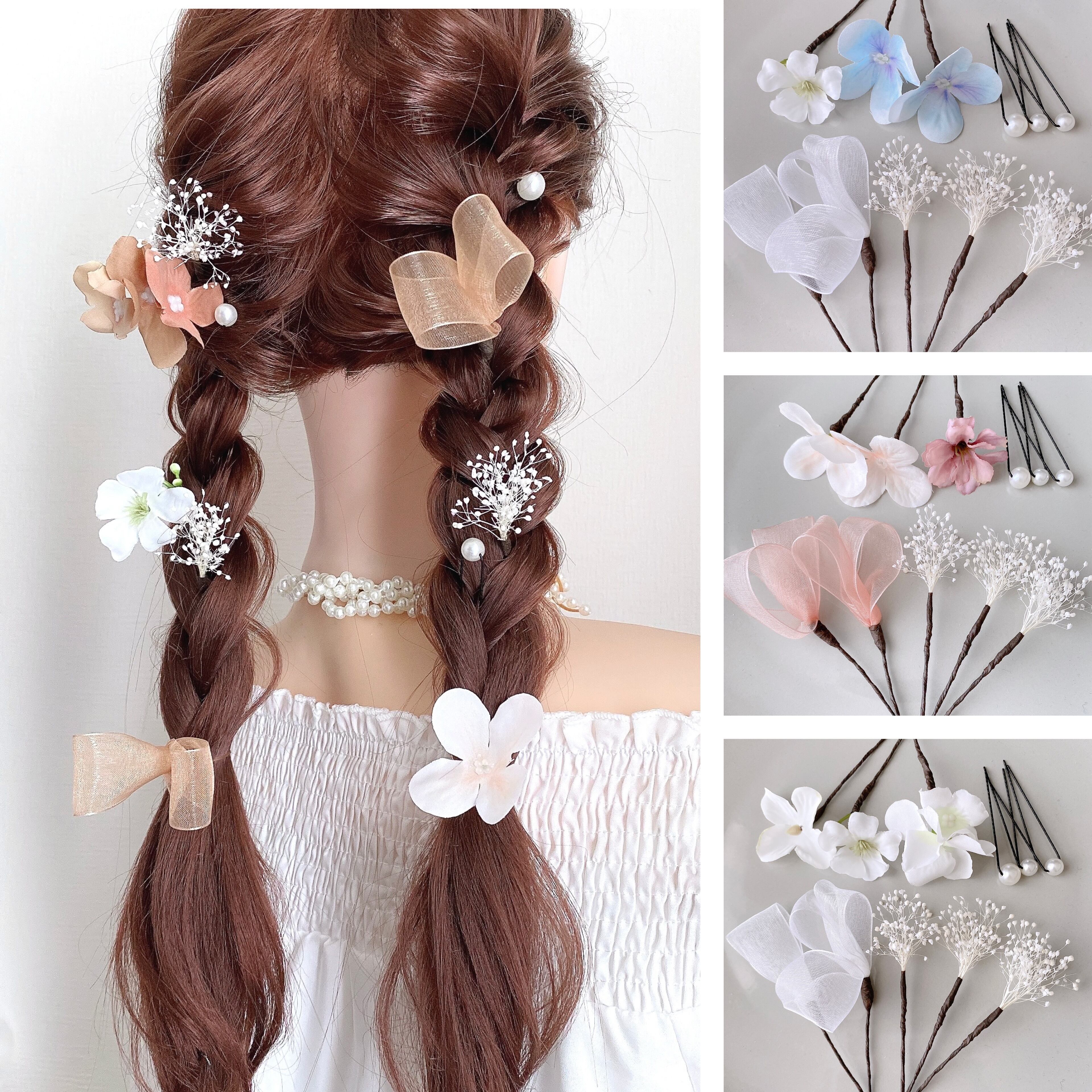 まとめてつけても、左右に分けたり、編みおろしなど全体に散らしてつけても可愛いです。