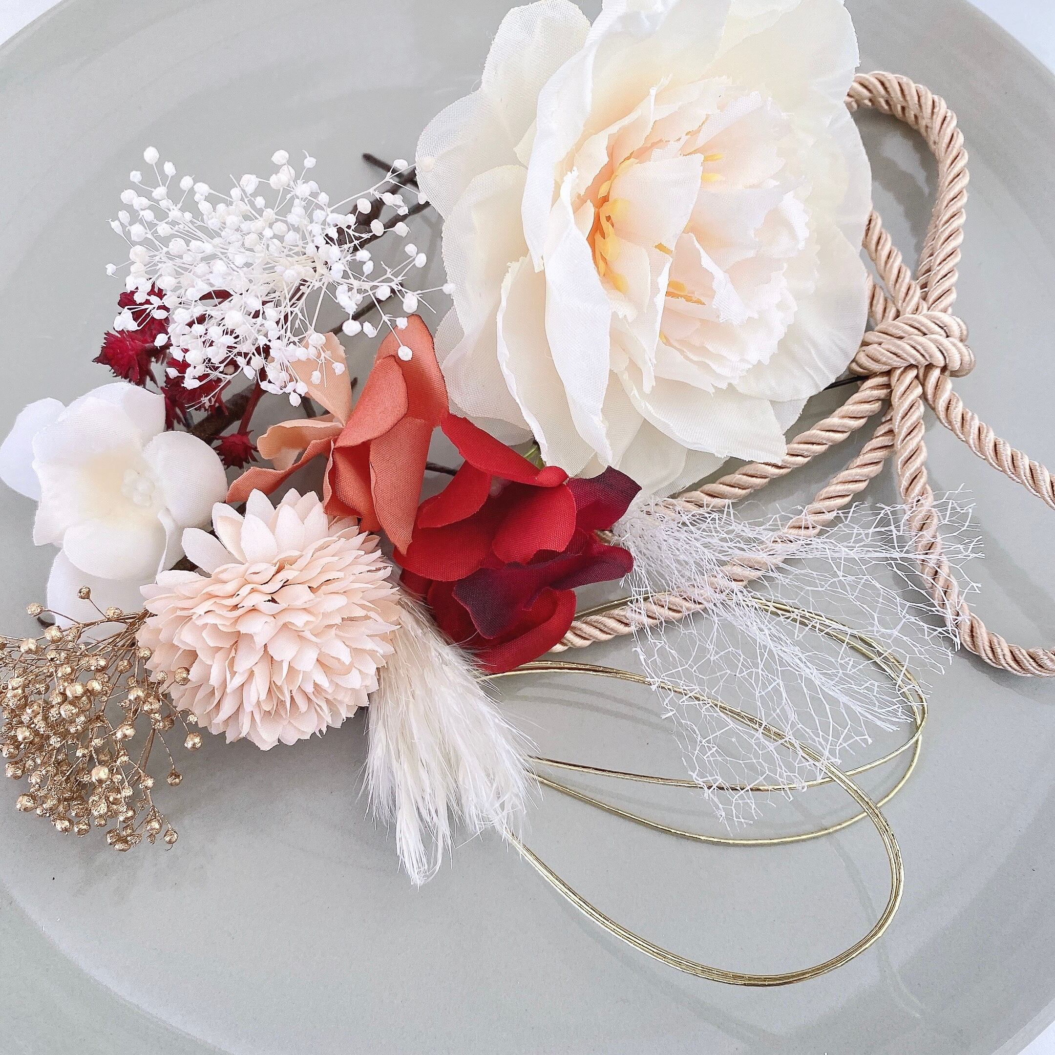アーティフィシャルフラワーやブリザードフラワーは 写真写りもよく、劣化しにくいため、成人式、前撮り、お式本番、浴衣、結婚式の参列など 繰り返しお使いいただけます。