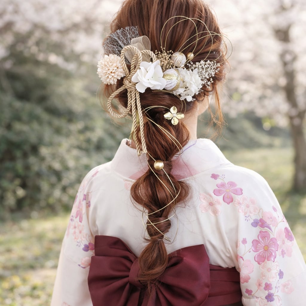 水引3本は 毛束に巻き付けたり、まとめ髪にヘアピンで固定し お好きな形でお使い頂けます。