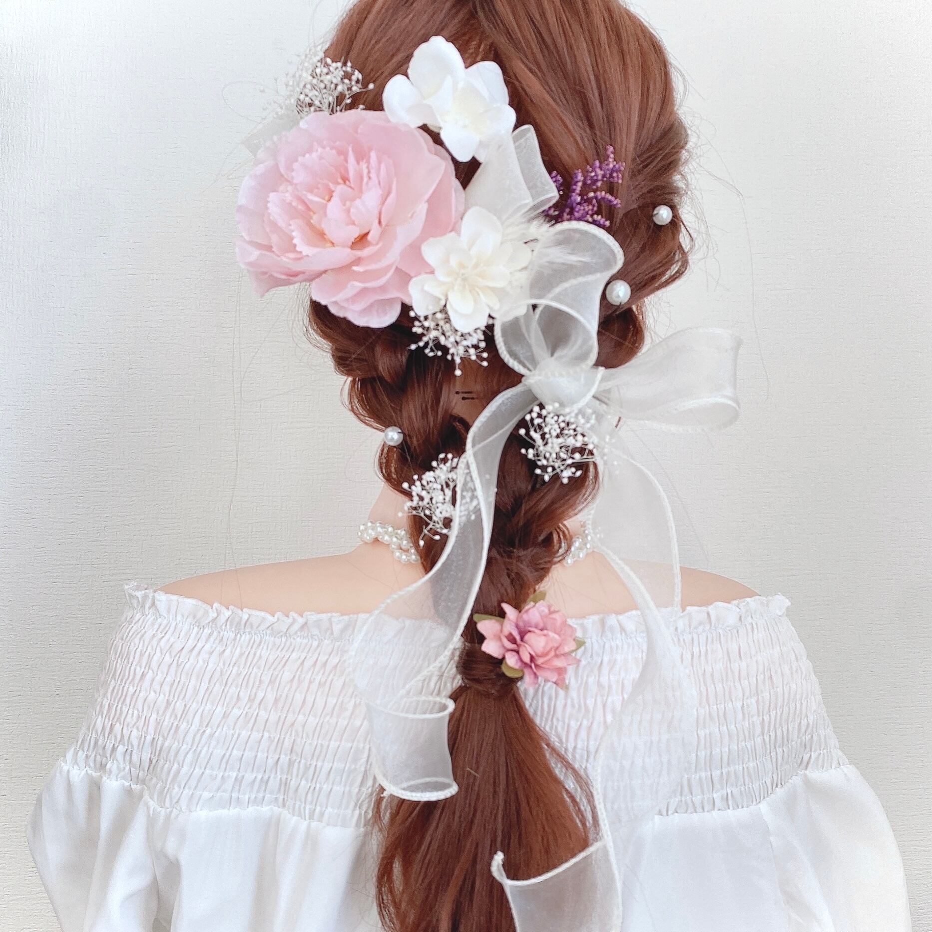 アーティフィシャルフラワーやブリザードフラワーは写真写りもよく劣化しにくいため、成人式、前撮り、お式本番、浴衣、結婚式の参列など 繰り返しお使いいただけます。