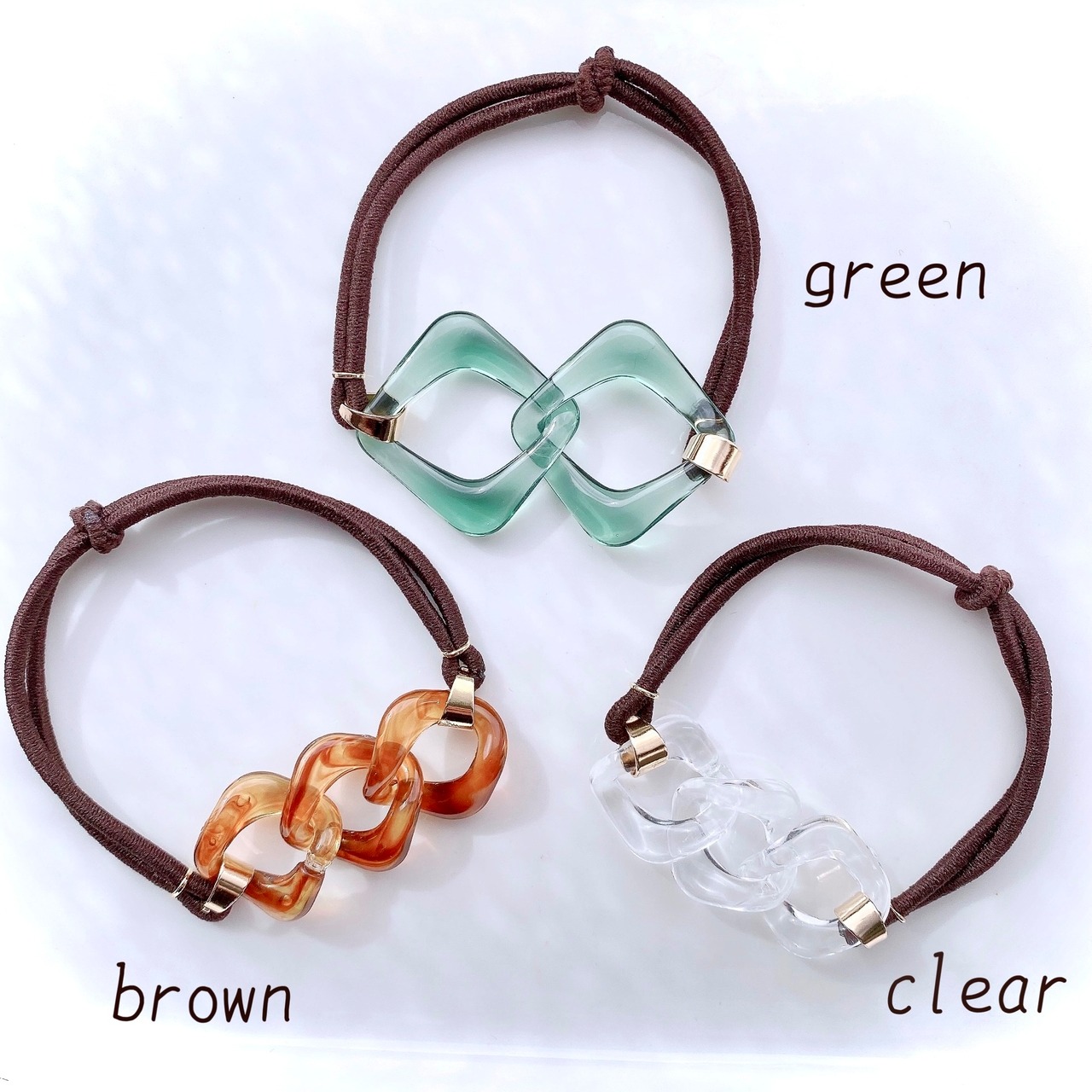 アクリルチェーンのヘアゴム です。