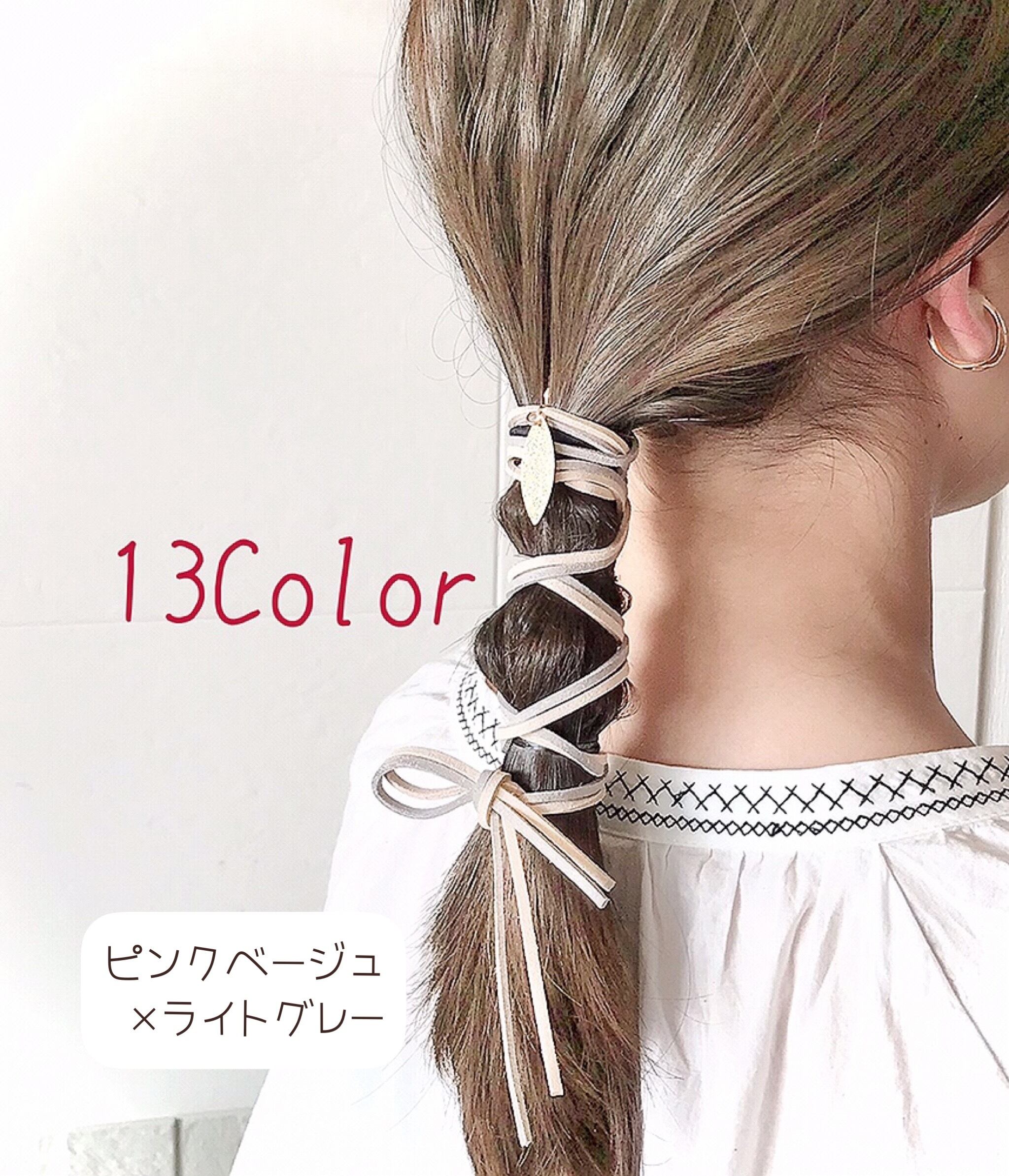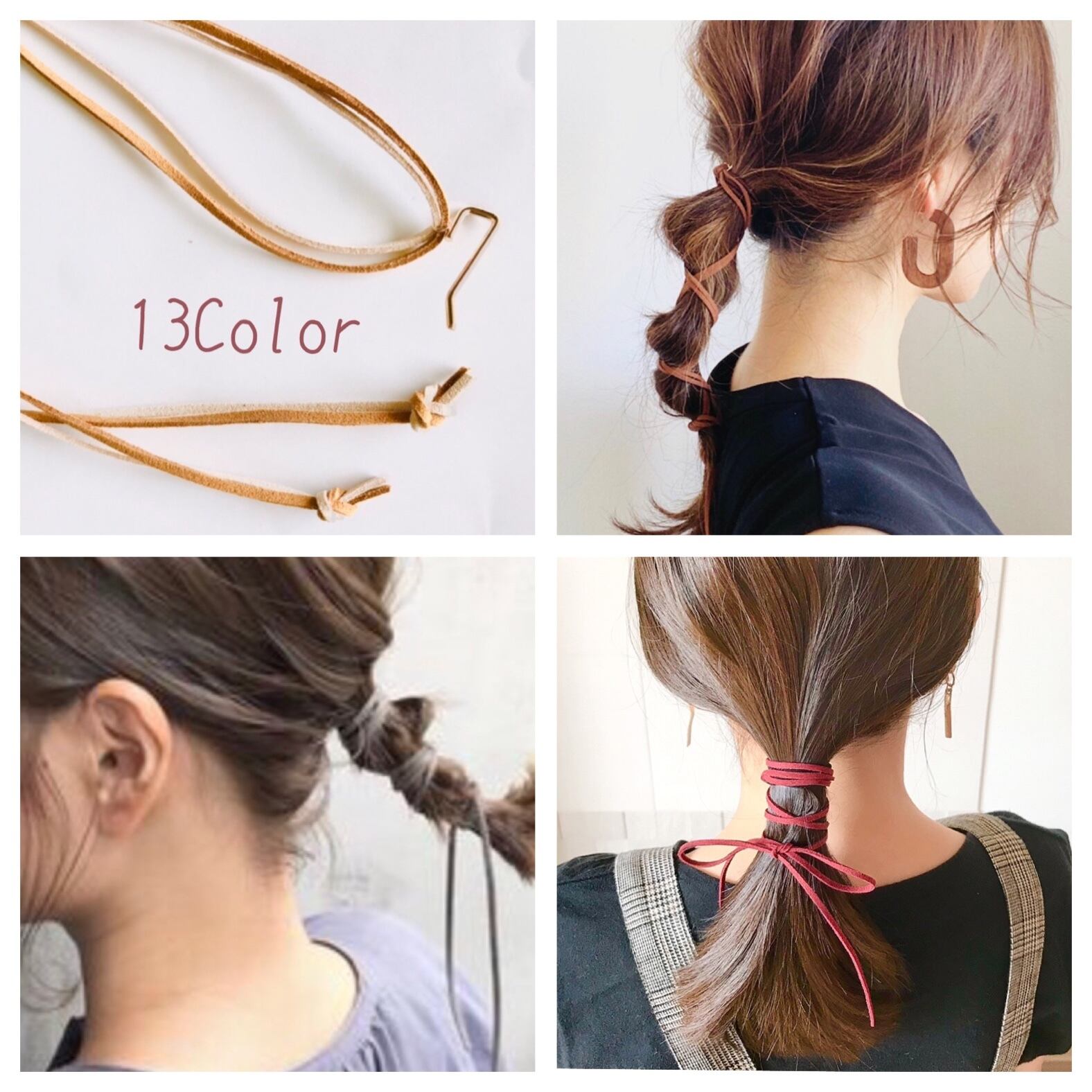 トレンドの紐のヘアアレンジができるスエード調の革紐です。