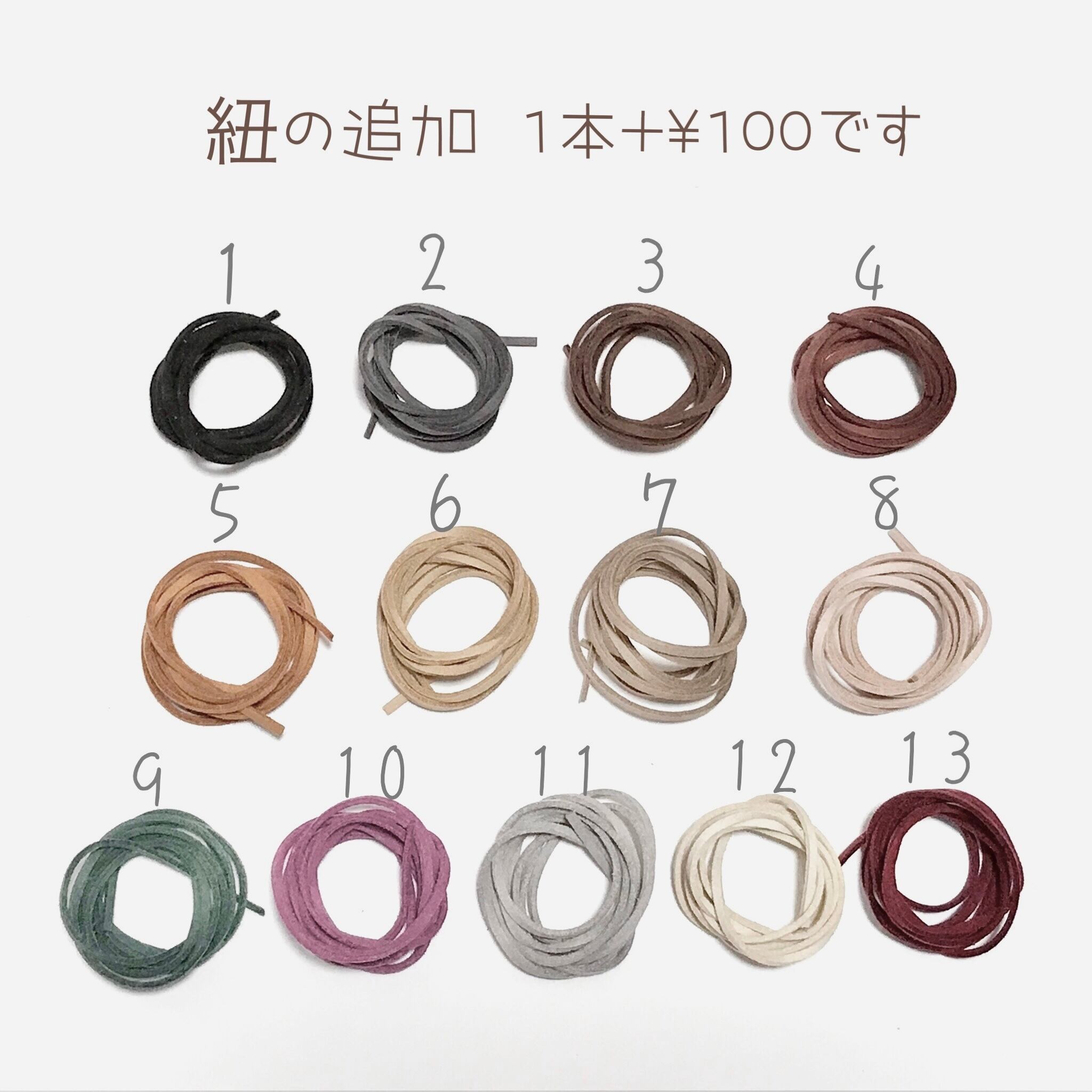 ★他にも同じ紐に飾りチャームやビーズがつけれるタイプや、本革&紐タイプ、イヤーカフ、革のヘアアクセサリーなど多数出品しています。