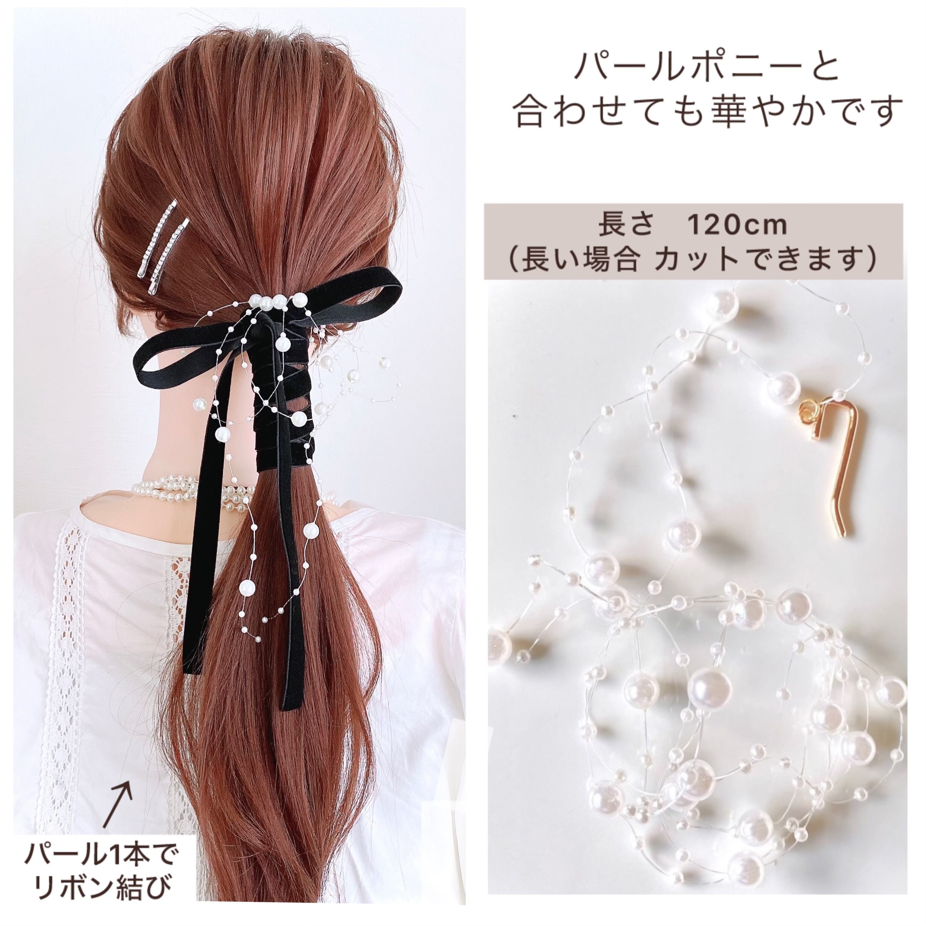 【ブラック】ベロアリボン ポニーフック ブライダルヘア 結婚式 卒業式ヘア