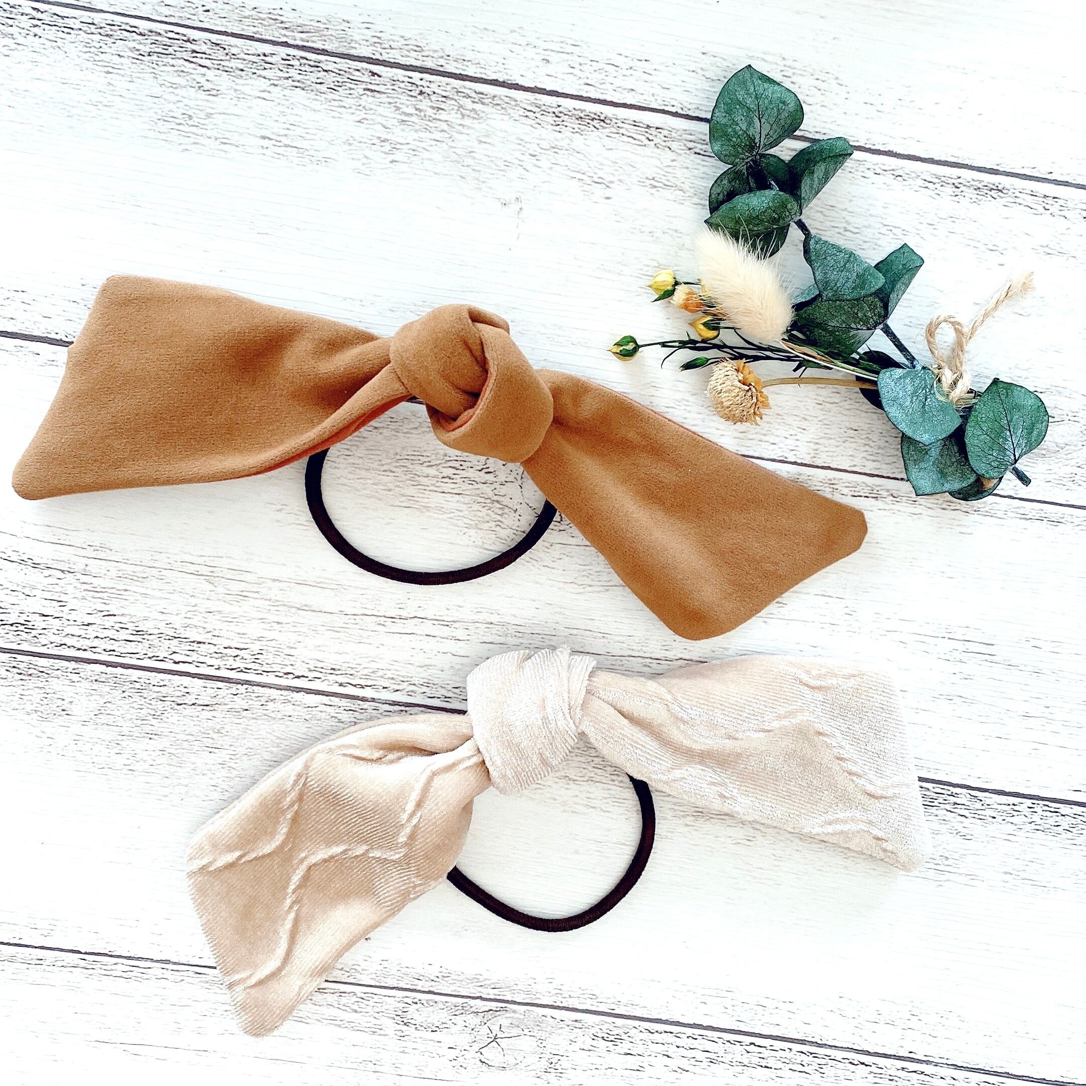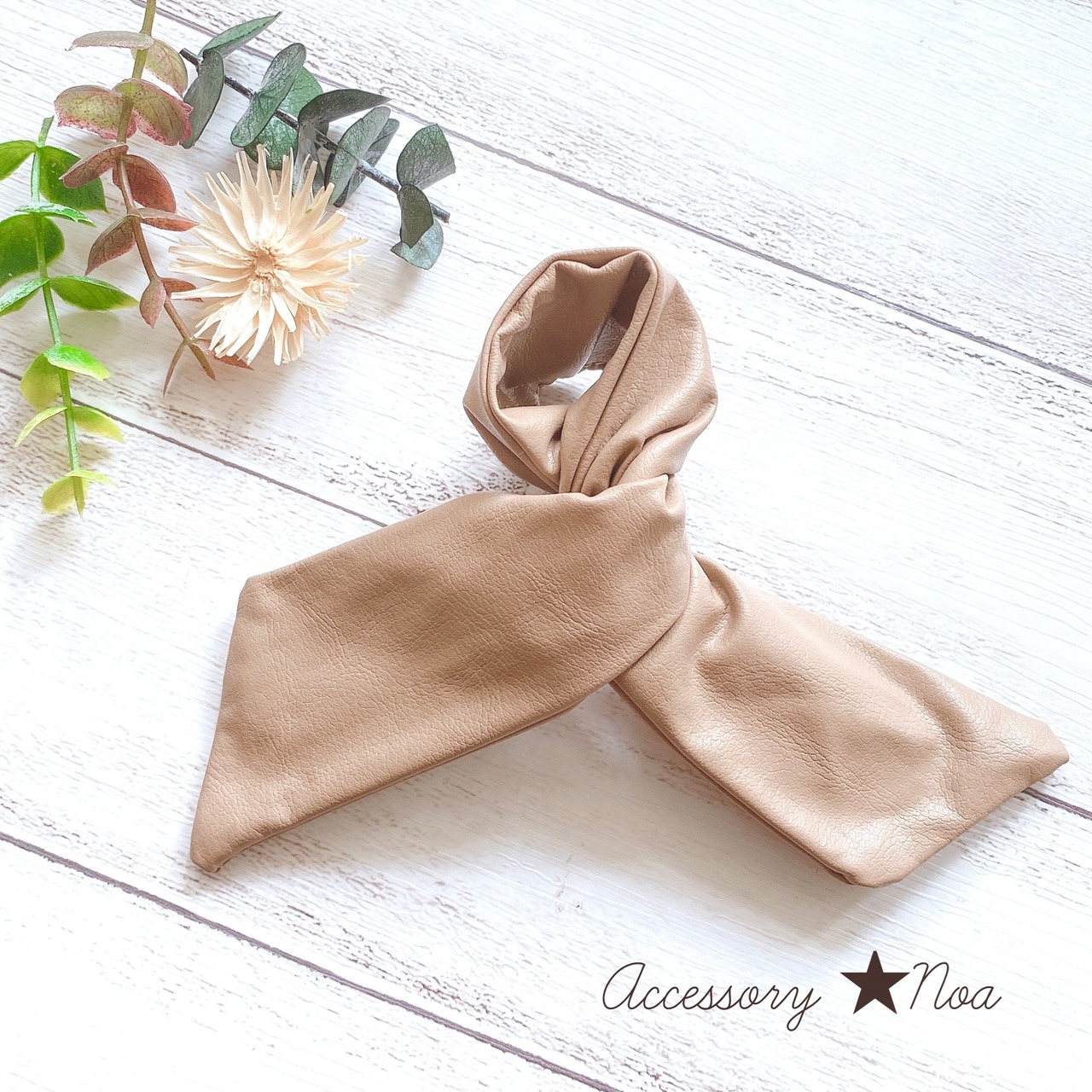 【ベージュ】レザー調ワイヤーリボン /ワイヤーポニー ヘアワイヤー
