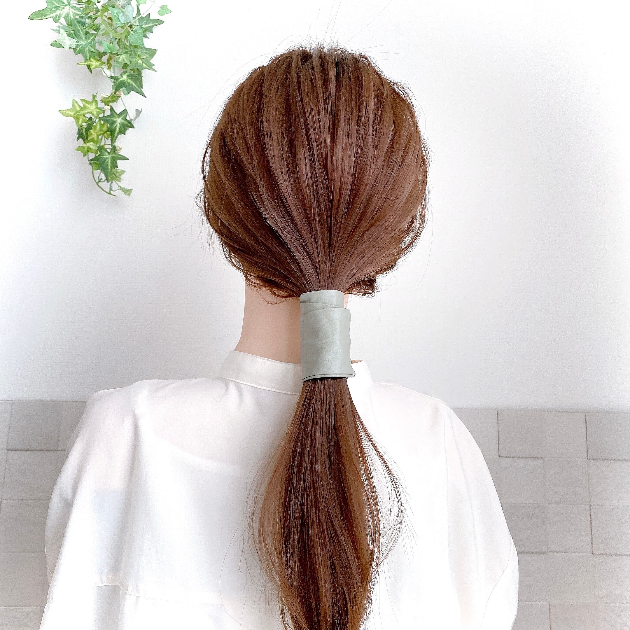 【ピスタチオ】レザー調ワイヤーリボン / ワイヤーポニー ヘアリボン