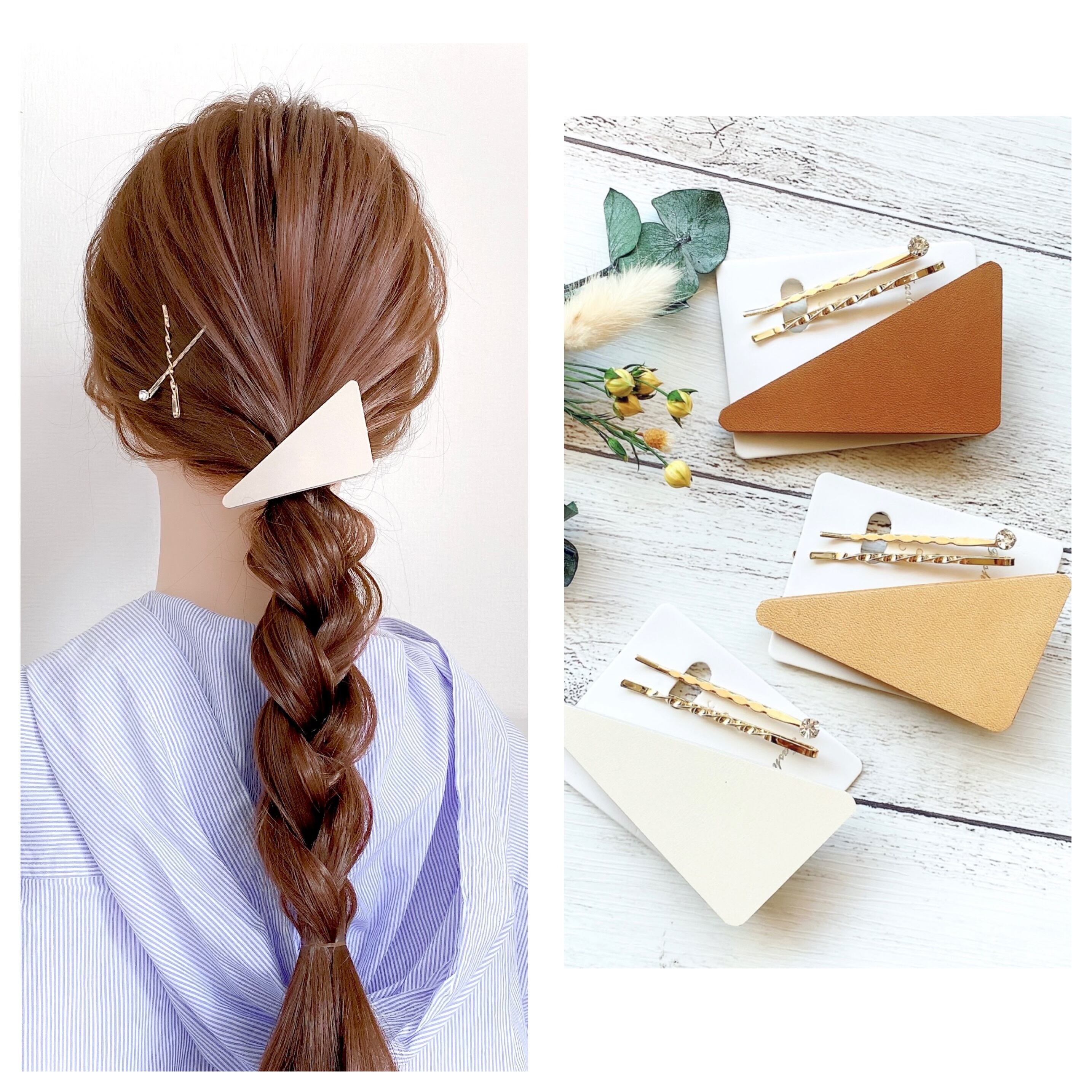 三角レザークリップ1点➕一緒につけても可愛いゴールドピン2点の 3点セットです。