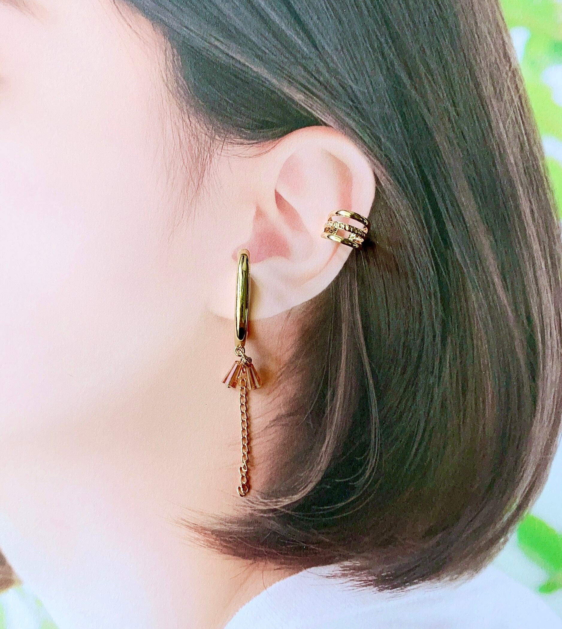 耳の軟骨部分に引っ掛けるだけでノンホールの方でも気軽に耳元のオシャレが楽しめます!