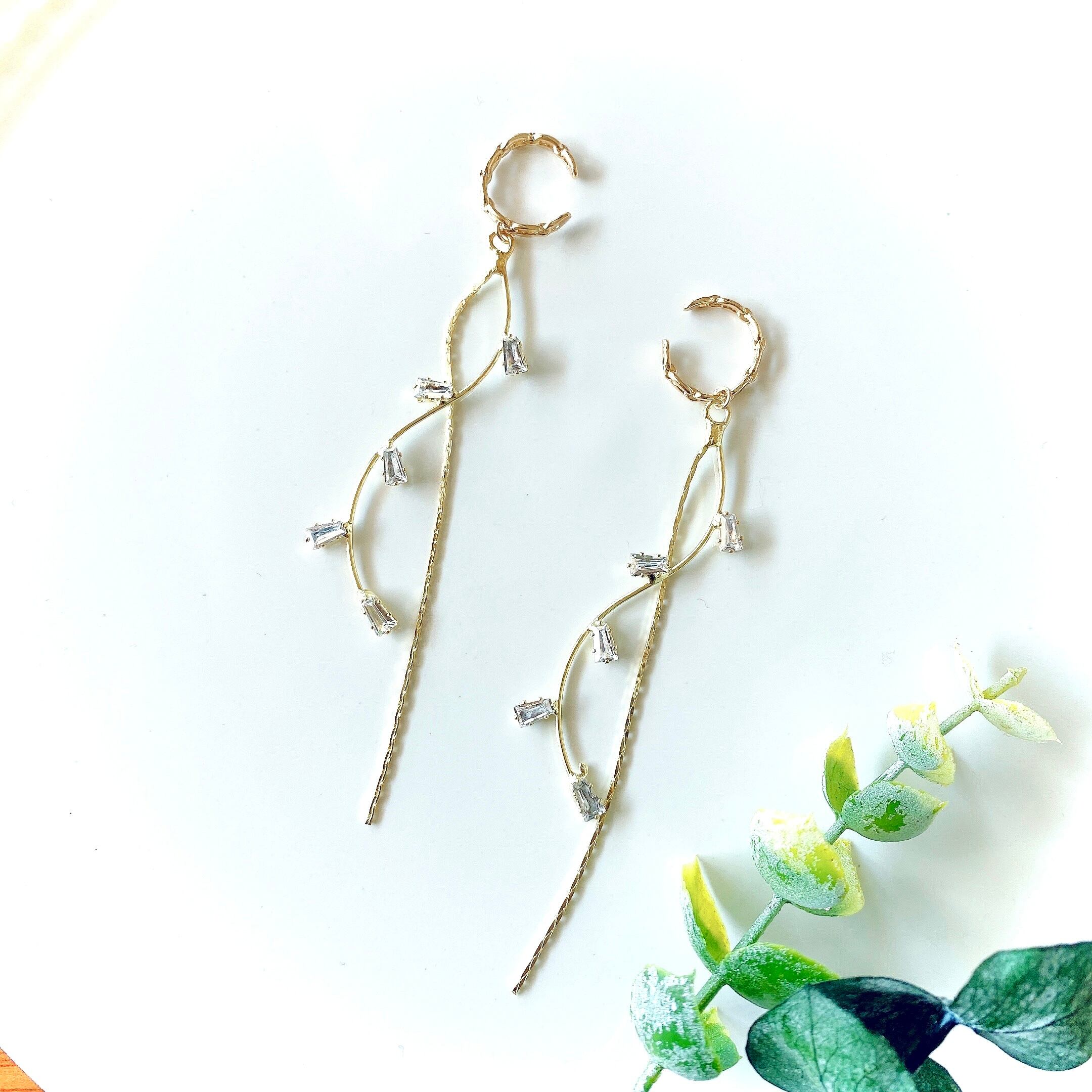 ガラスストーン ロングチェーン イヤカフ 片耳 / 両耳