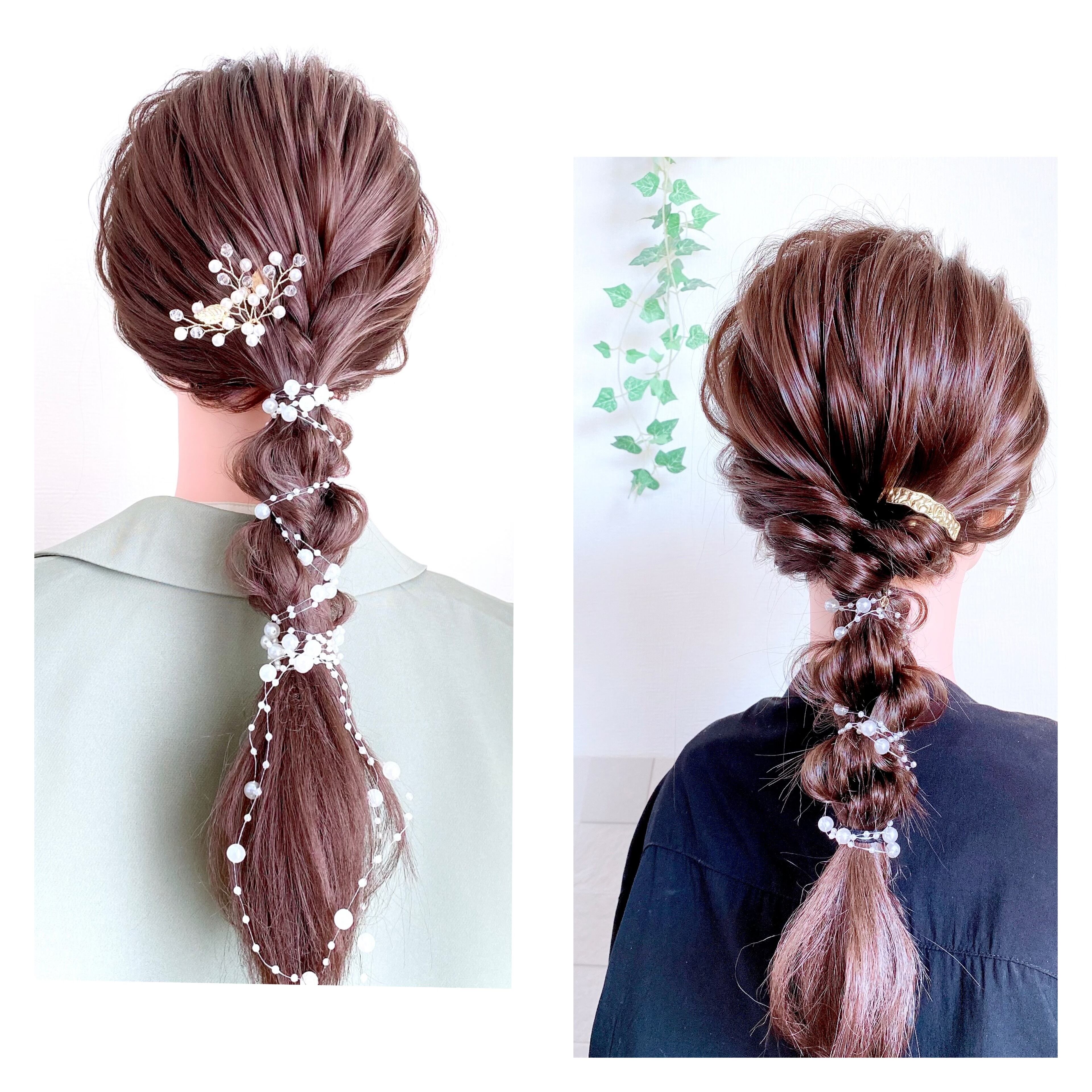 先端のパールをアメピンで留めてもお好きな場所で固定できます)