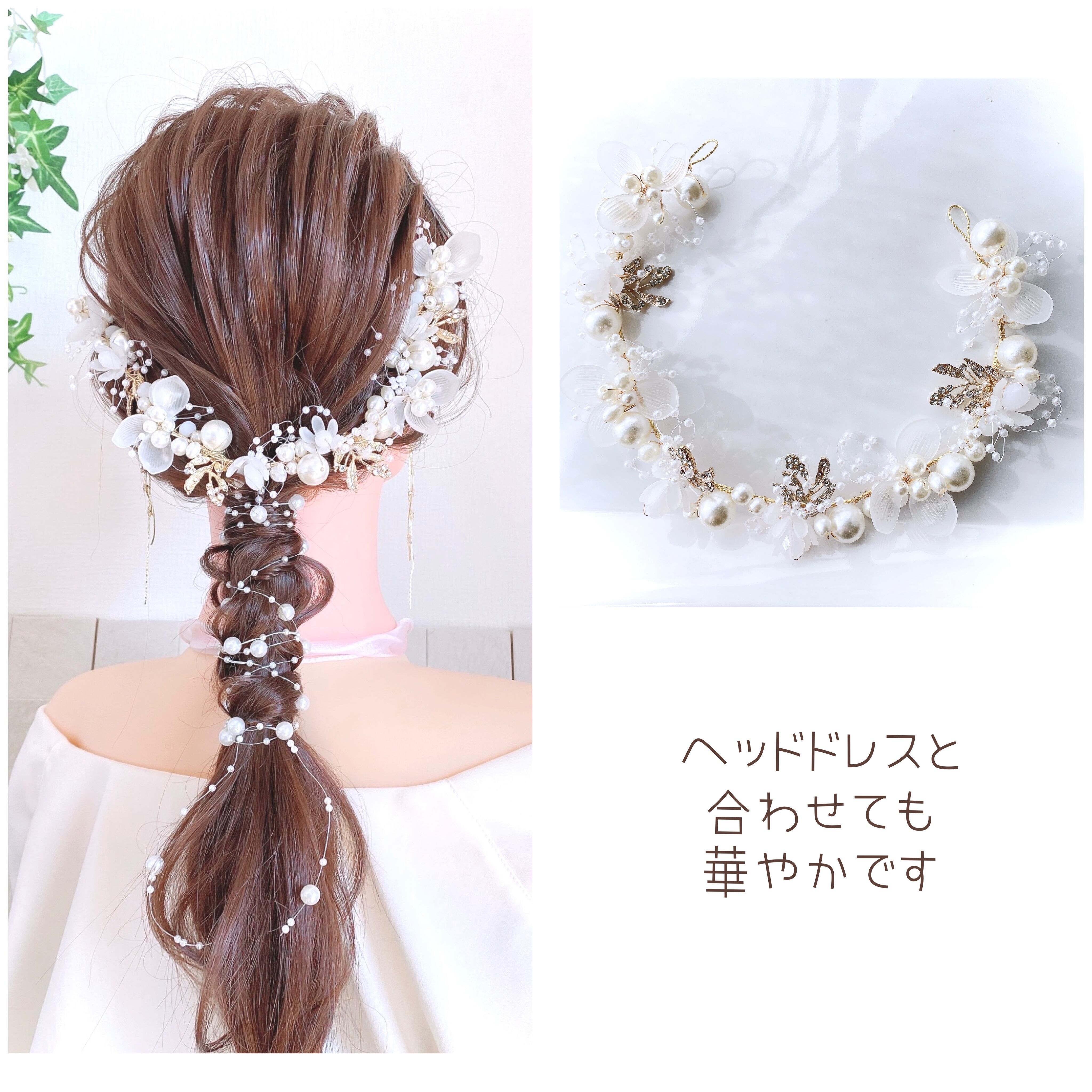 大小のパールが連なった上品で華やかなヘアアクセサリー