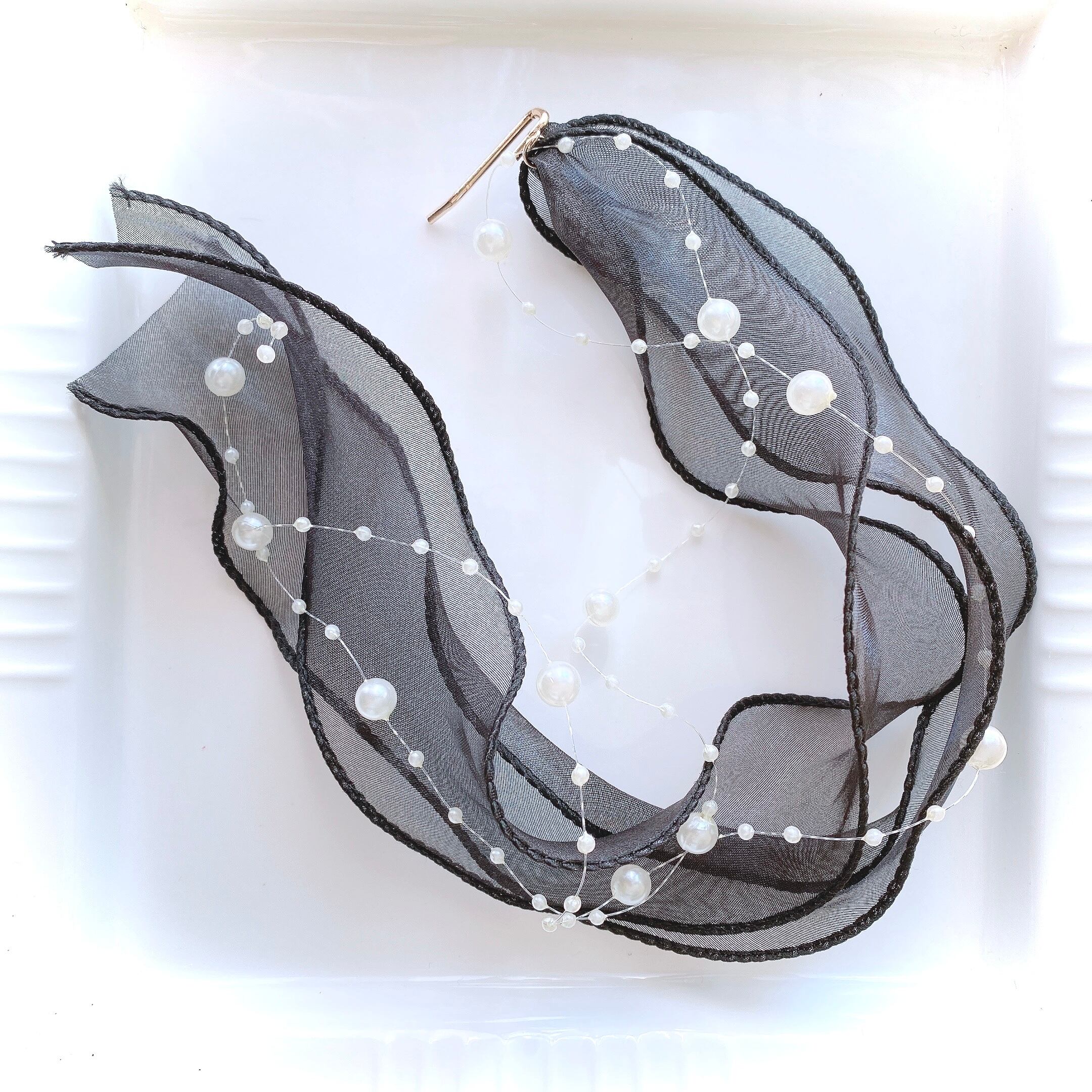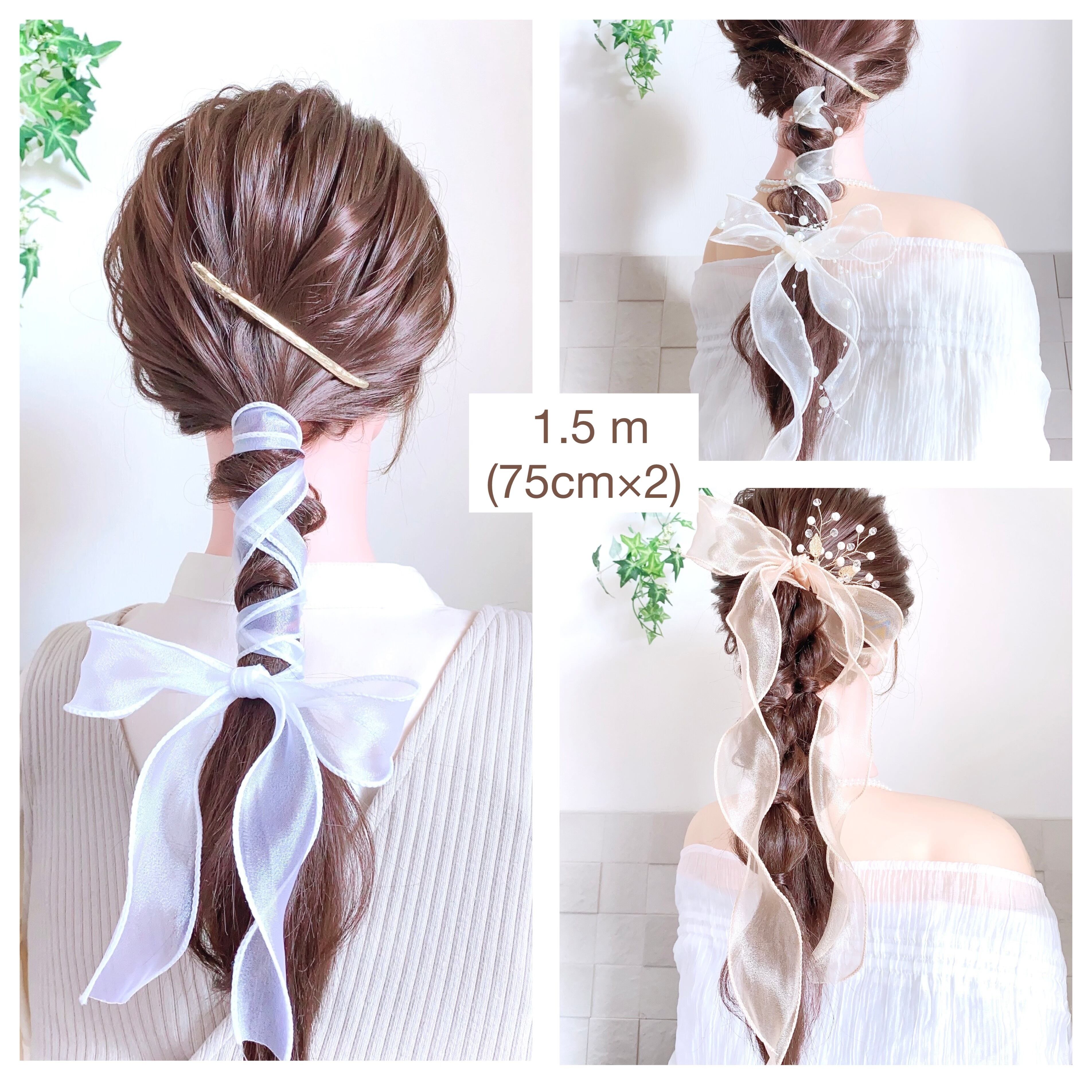 オーガンジーリボン シアーリボン パールアクセサリー 紐 ヘアアレンジ ぐるぐる タイトポニー ヘアアクセサリー りぼん 巻 シンプル リボン マジェステ こなれ ポニーフック ヘアフック ヘアカフス ヘアゴム 大人っぽい おしゃれ 巻き付け 簡単アレンジ カジュアル 編みおろし ブライダル ウェディング フォーマル 結婚 卒業 入学パール 黒