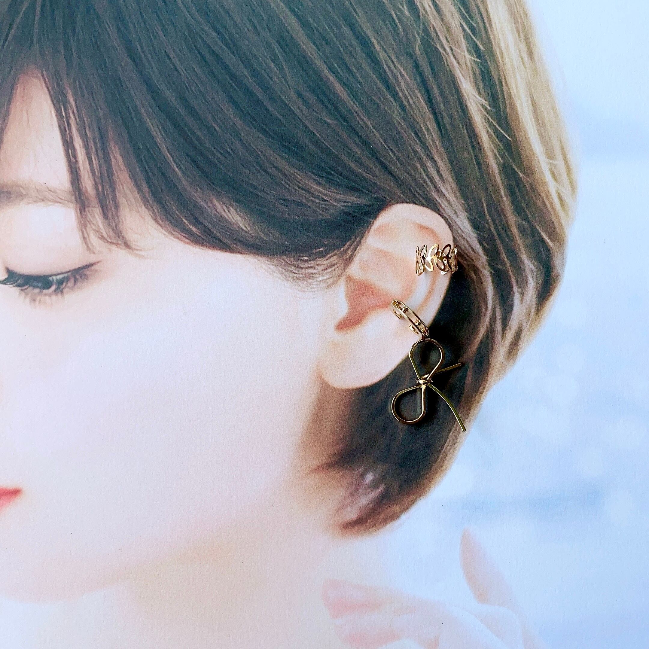 2way リボンイヤーカフ イヤカフ 片耳 両耳