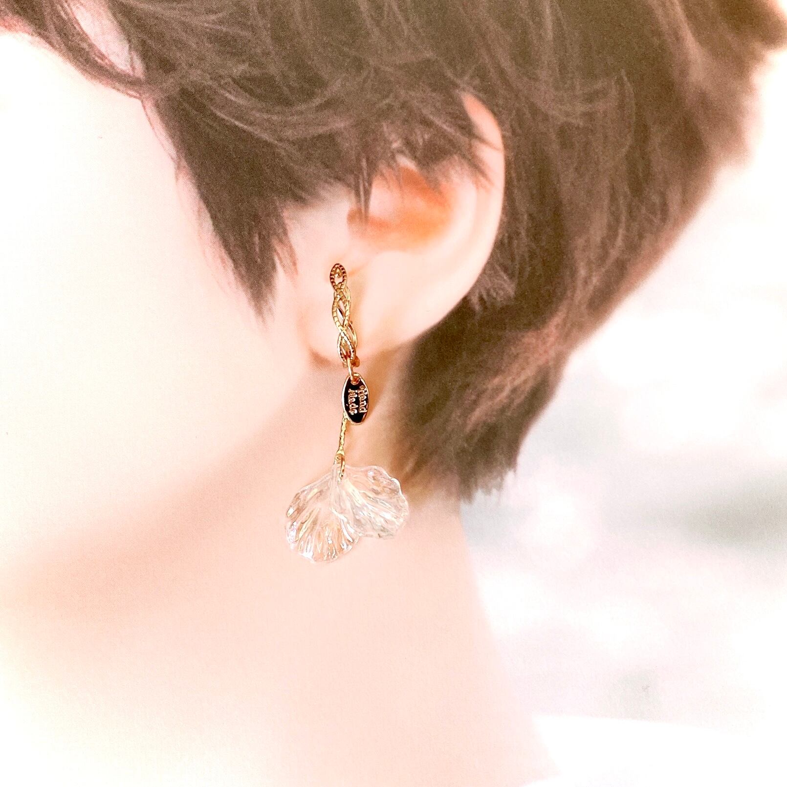 透明感のある2枚の花びらが キラキラ揺れるイヤーカフ