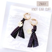 2WAY ドット柄 結び目 イヤーカフ / 片耳 両耳 リボン イヤカフ