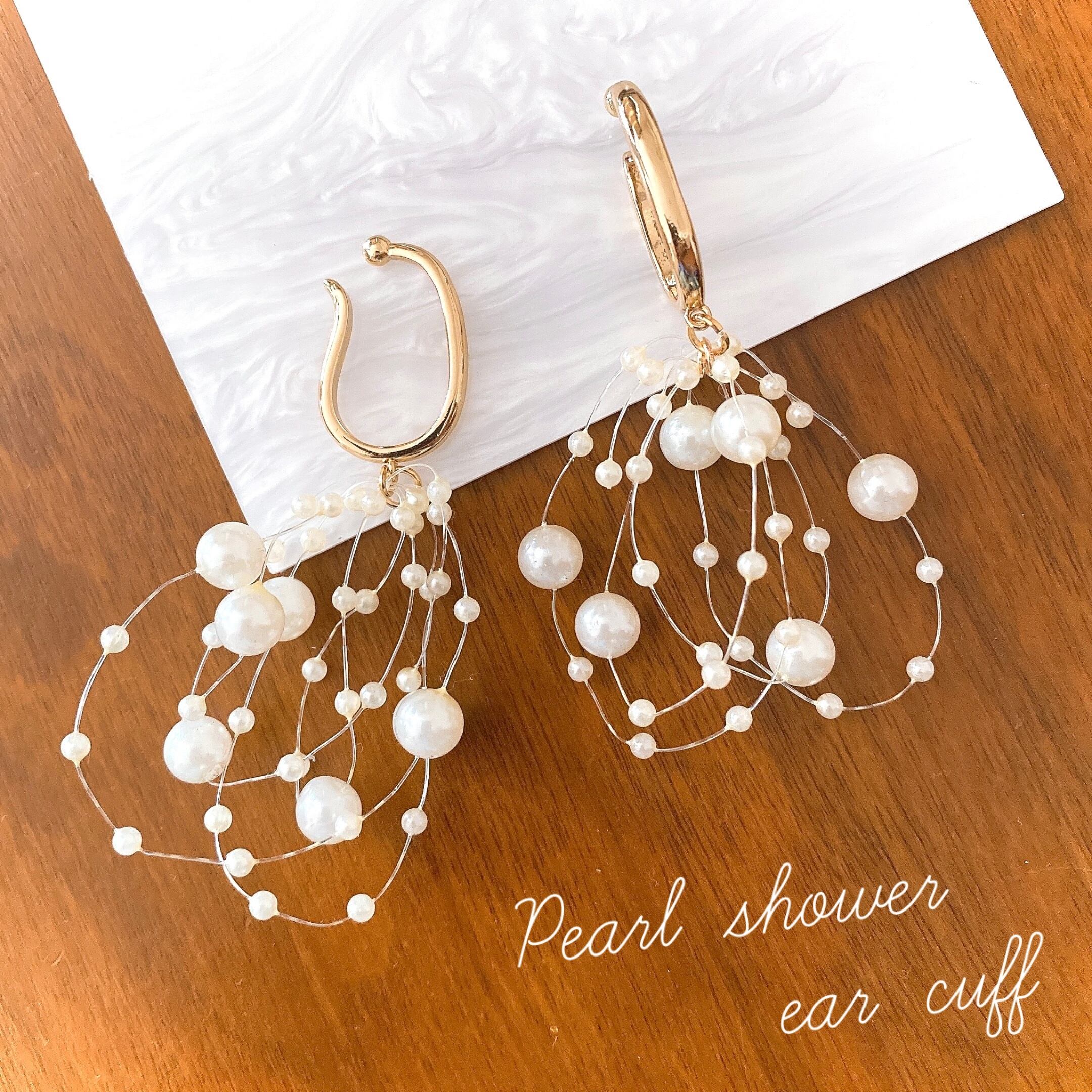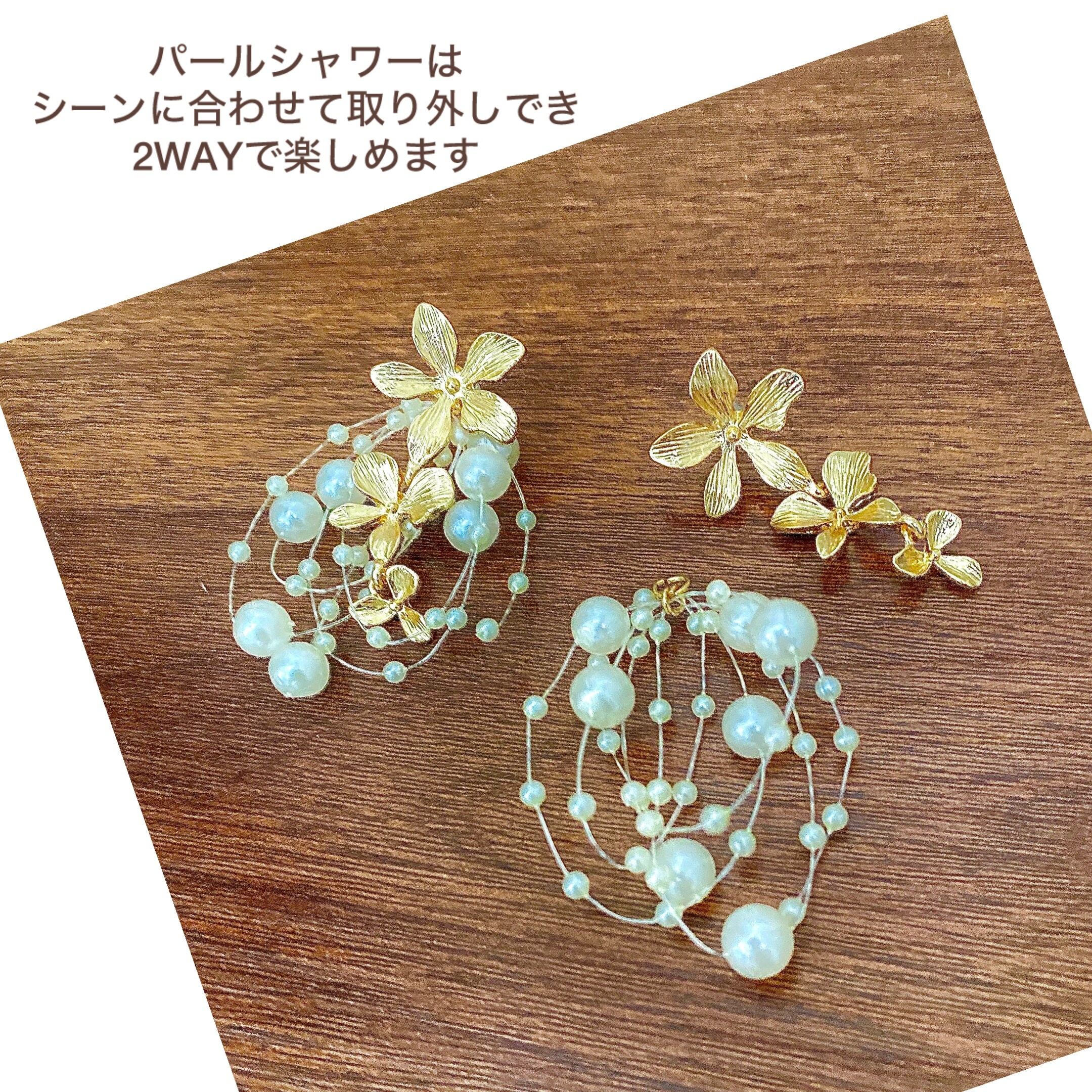 2WAY ピアス イヤリング パールシャワー ゴールドフラワー ブライダル アクセサリー