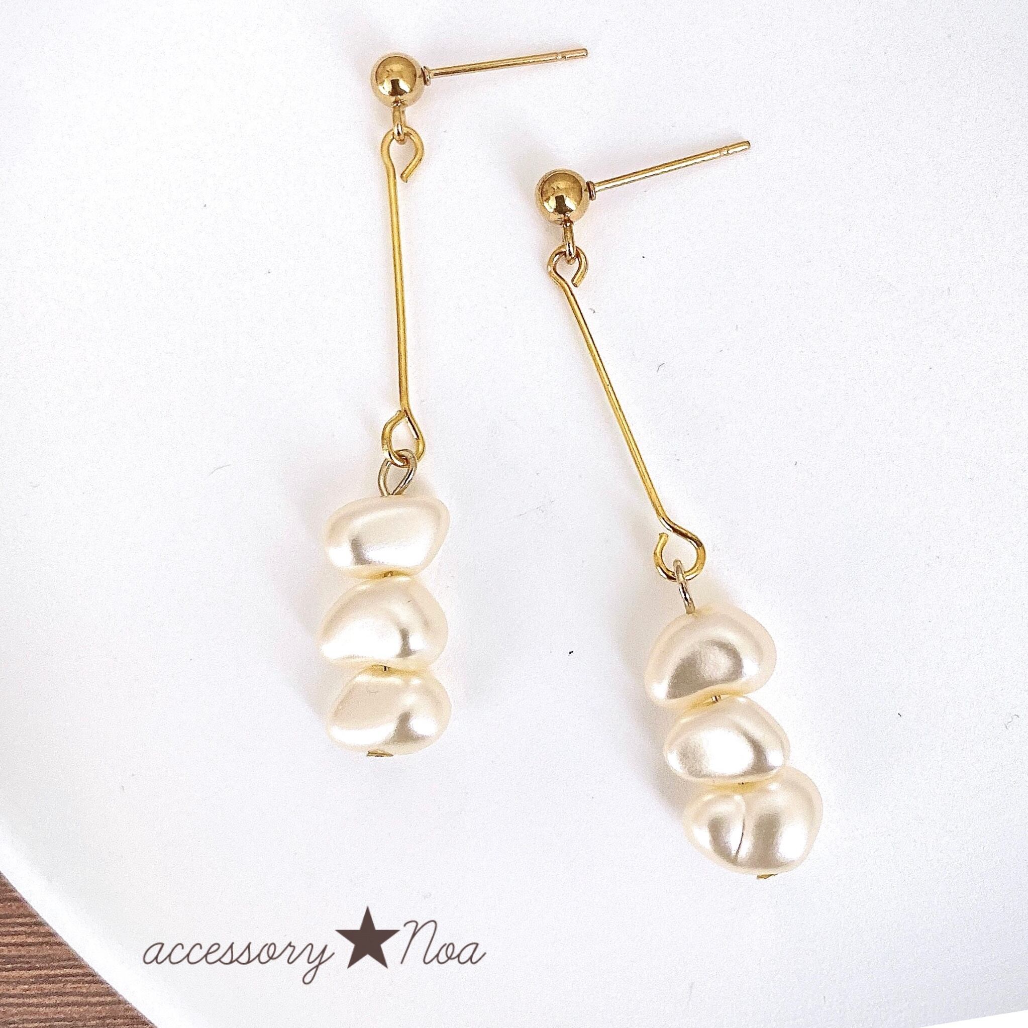 3つのパールが揺れる ピアス / イヤリング /イヤーカフ