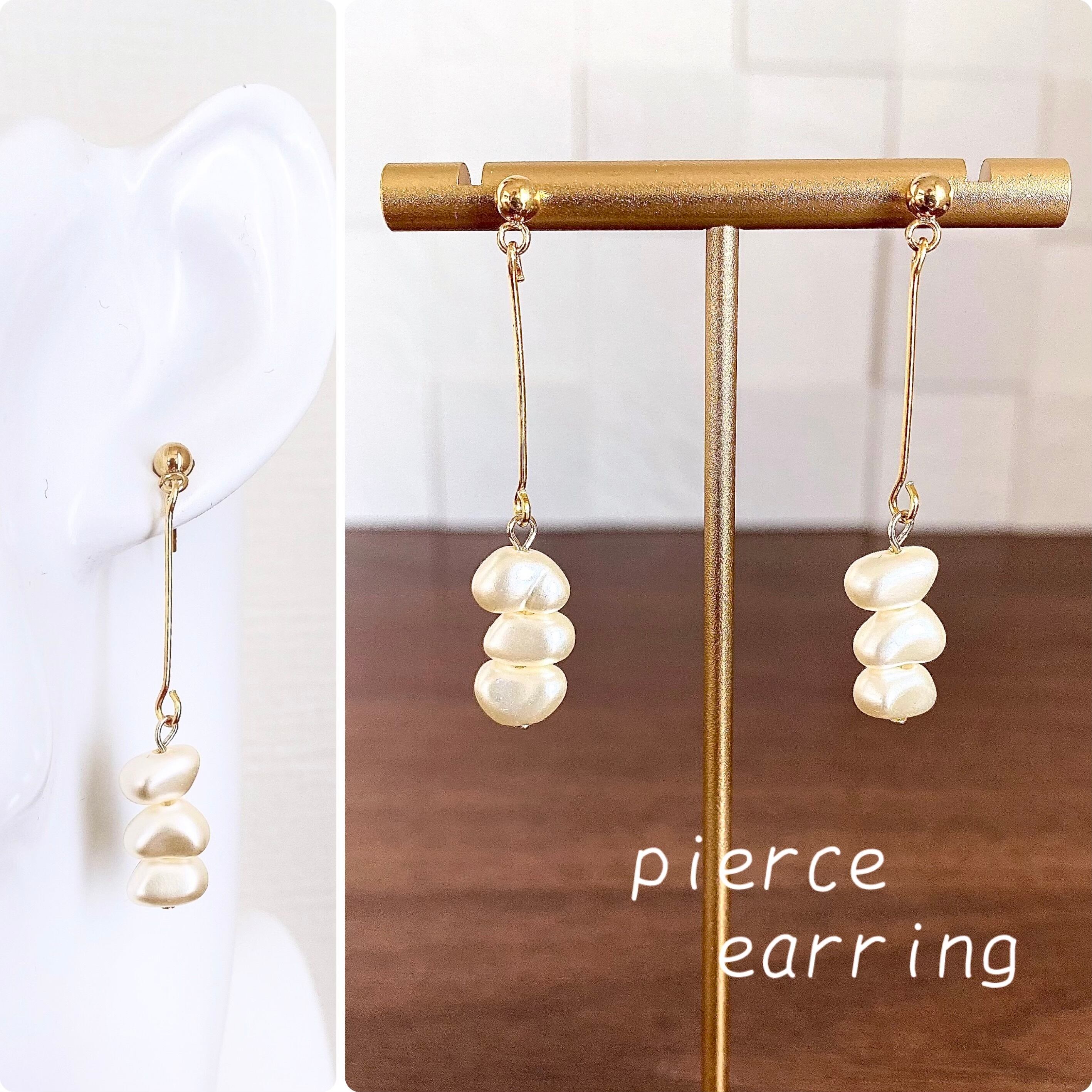 揺れるリボンとシャボンビーズが可愛い ピアス / イヤリング /イヤーカフ