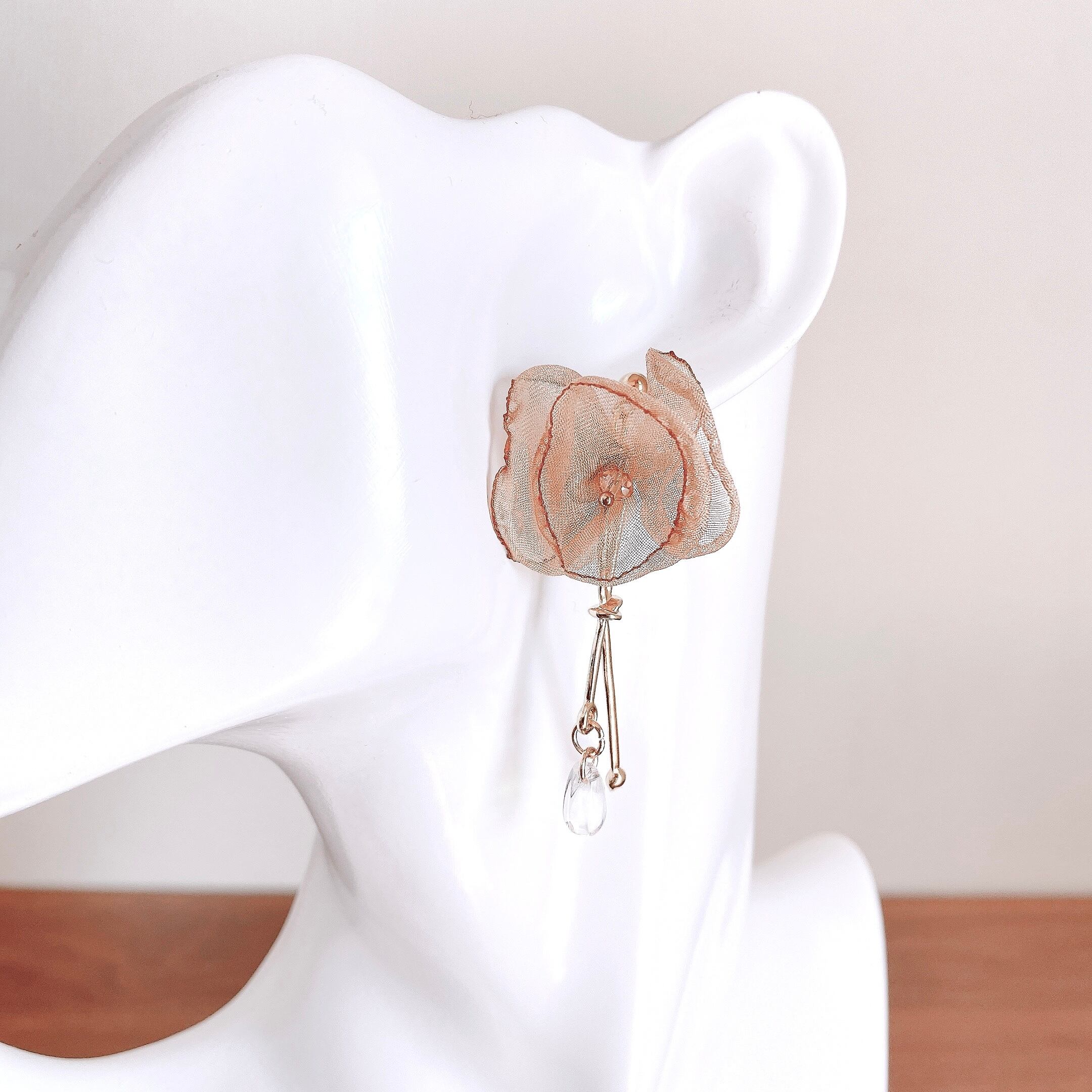 シフォンフラワー 水滴 ちゅるん ピアス / イヤリング /イヤーカフ ティアドロップ 花 アクセサリー アレルギー対応